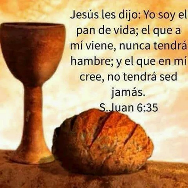 Y Jesús les dijo: «Yo soy el pan que da vida. El que viene a mí, nunca más tendrá hambre, y el que en mí cree, nunca más tendrá sed».